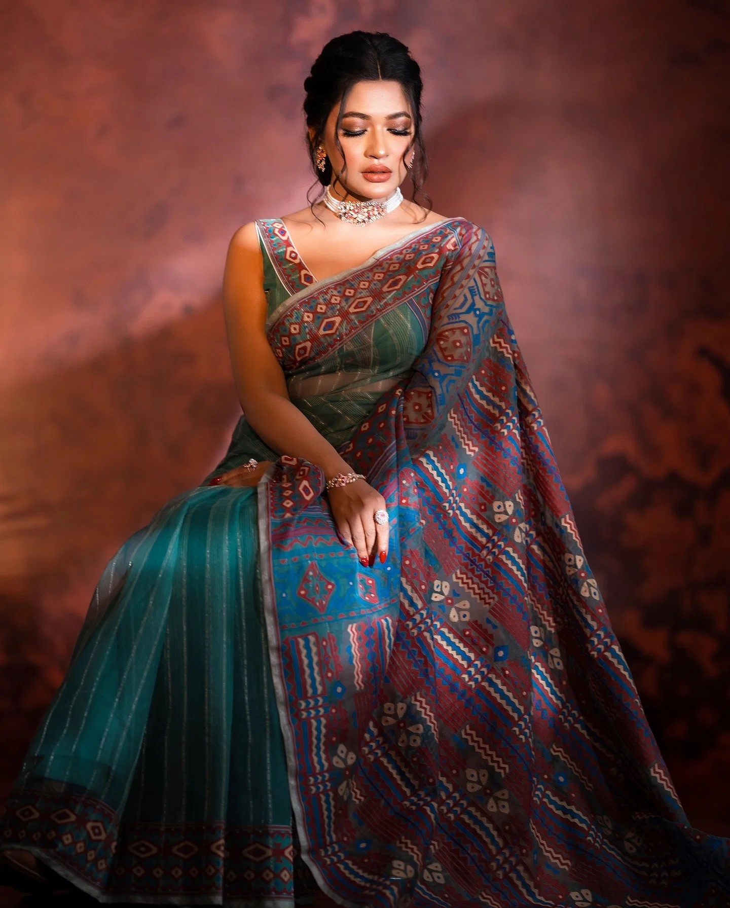৭৪তম কান চলচ্চিত্র উৎসবে লালগালিচার ‘আইকনিক’ সেই লুকের পর থেকেই অভিনেত্রী আজমেরী হক বাঁধন যেন জামদানির ‘অলিখিত’ ব্র্যান্ড অ্যাম্বাসেডর। তাই বাঁধন যে এ বছর মেরিল–প্রথম আলোর লালগালিচায় জামদানি শাড়িতে দেখা দেবেন, অনেকে আগেই তা ভেবেছিলেন। ২০২২ সালের মতো এ বছরও তিনি দেখা দিলেন দেশি ফ্যাশন হাউস ‘নব’–এর নকশা করা জামদানিতে। ছবিতে দেখতে দেখতে জেনে নেওয়া যাক বিস্তারিত।